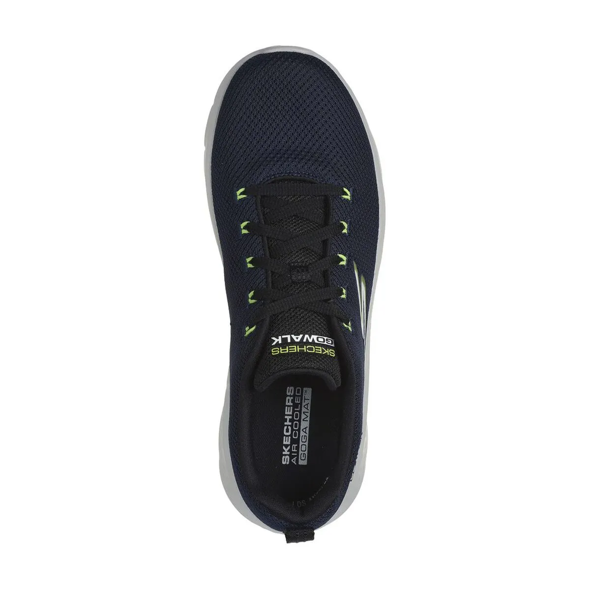 Zapatillas de Skechers con capellada de malla y cordones, ideales para entrenamiento cruzado. Su suela flexible con paneles de goma ofrece tracción y estabilidad, y además son lavables a máquina para mayor comodidad.