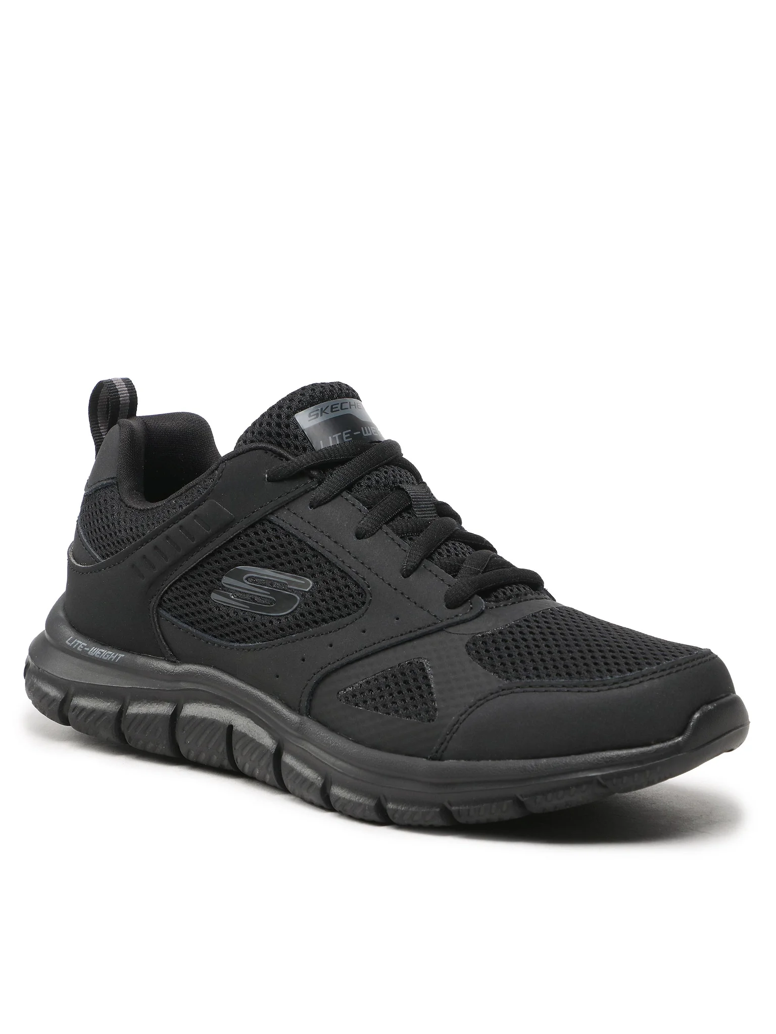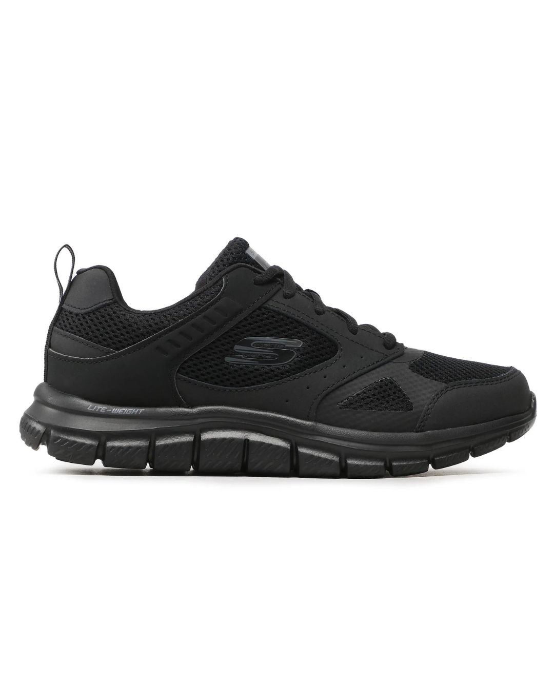 Zapatillas Skechers Track - Syntac para hombre, cómodas y resistentes, con combinación de cuero y malla transpirable. Incorporan plantilla Memory Foam™ y suela flexible con buena amortiguación, ideales para uso diario y entrenamiento ligero.